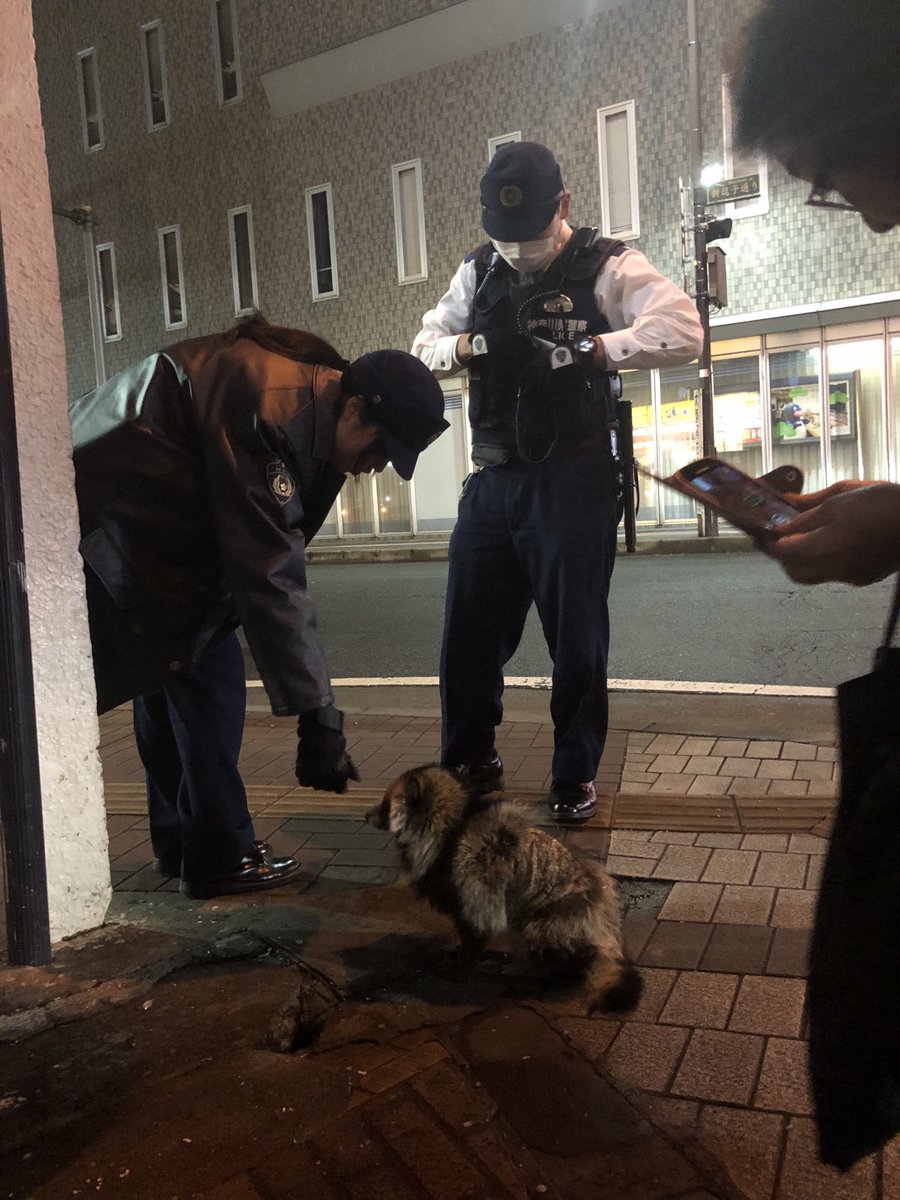 駅前に現れたタヌキが全く動こうとしない 対応している警察官が動物の扱いに慣れていなさすぎて不安になる タヌキを人間扱いw Togetter